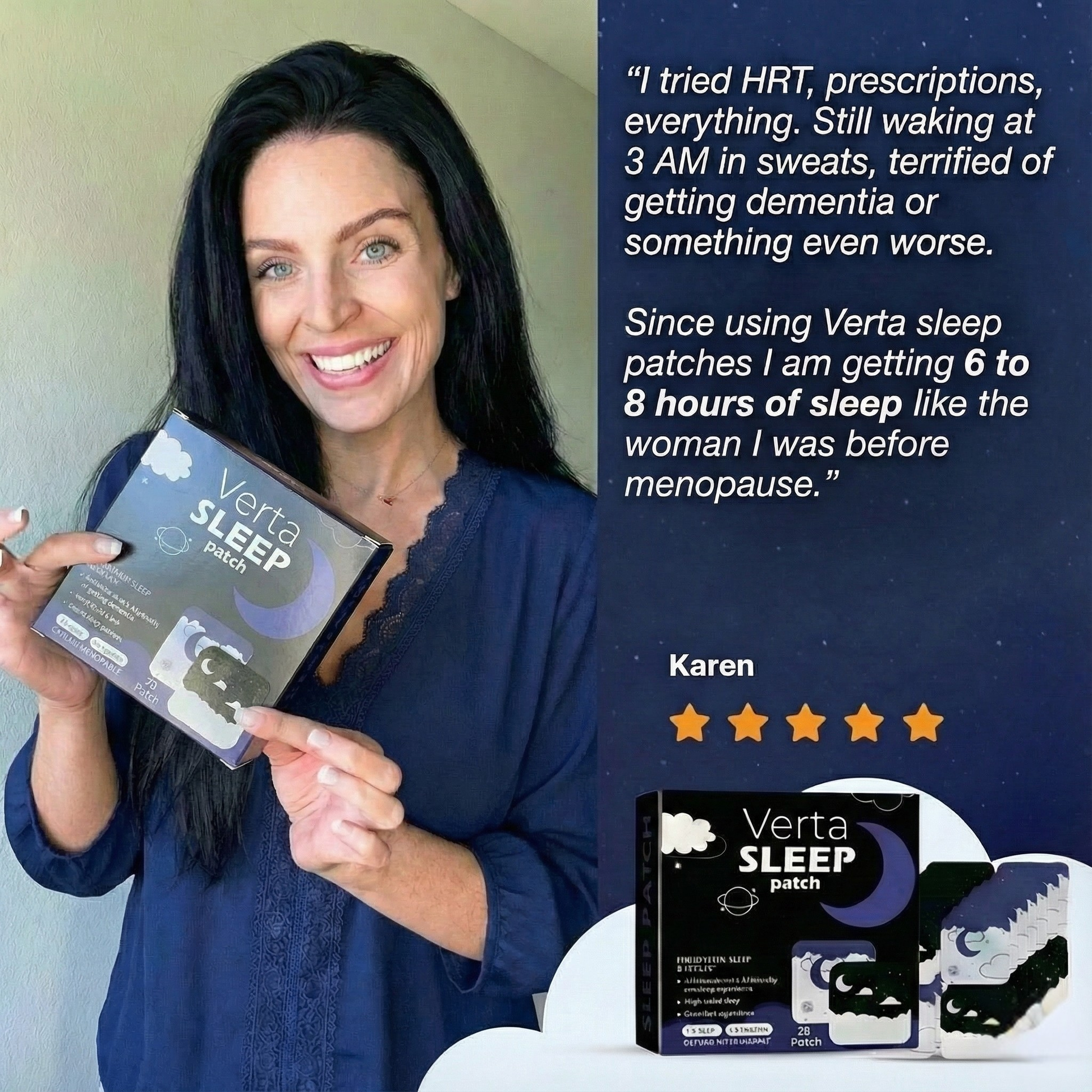 Over 25,000 women have transformed their sleep with Verta. We built this because menopause deserves better than "just deal with it." Our transdermal patches target the hormonal root cause of sleepless nights (hot flashes, night sweats, 3 AM wake-ups) so you finally get the deep, restorative sleep your body needs
