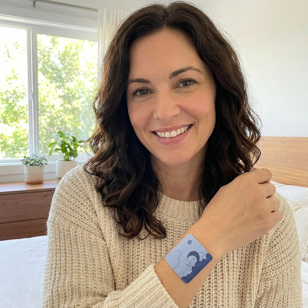 Simply peel off the protective film and apply the patch to clean, dry skin on your shoulder, arm, or upper back before bed. The medical-grade adhesive stays secure all night, even through night sweats.